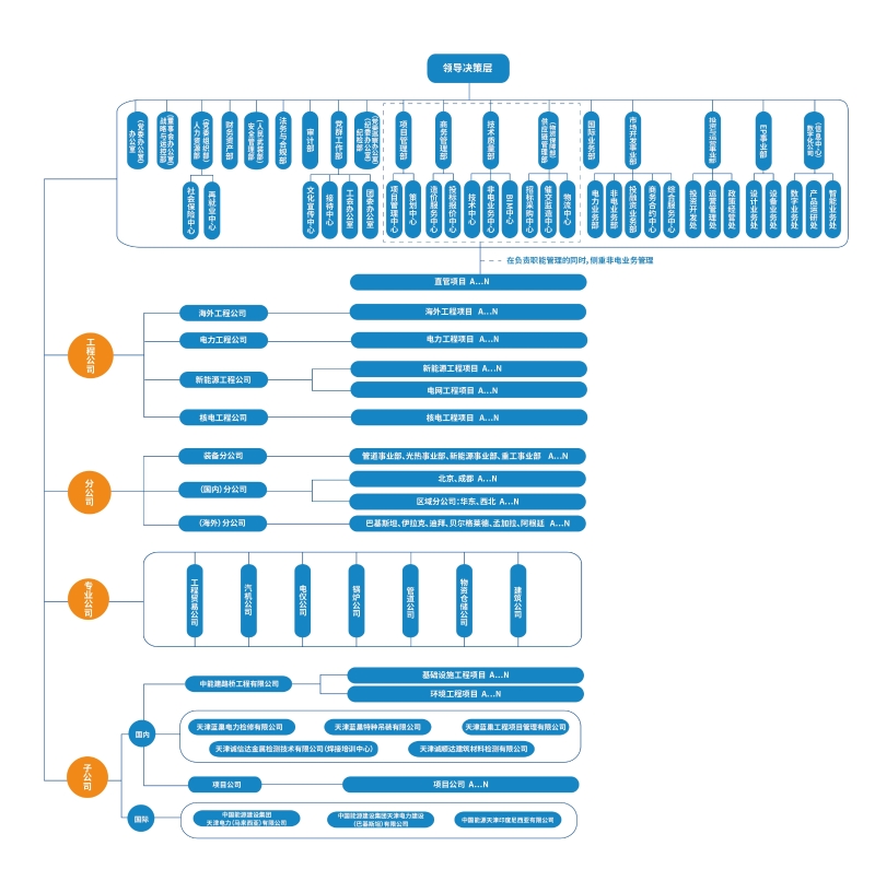 公司注重组织结构与战略目标、经营模式的匹配,以做优总部为龙头,以做实工程公司、做强专业公司为重点,以做精项目为目标,不断完善治理架构、清晰职能定位、明确组织权责,持续增强组织适应能力,提高组织协同与执行能力,充分保证公司整体运营效能。