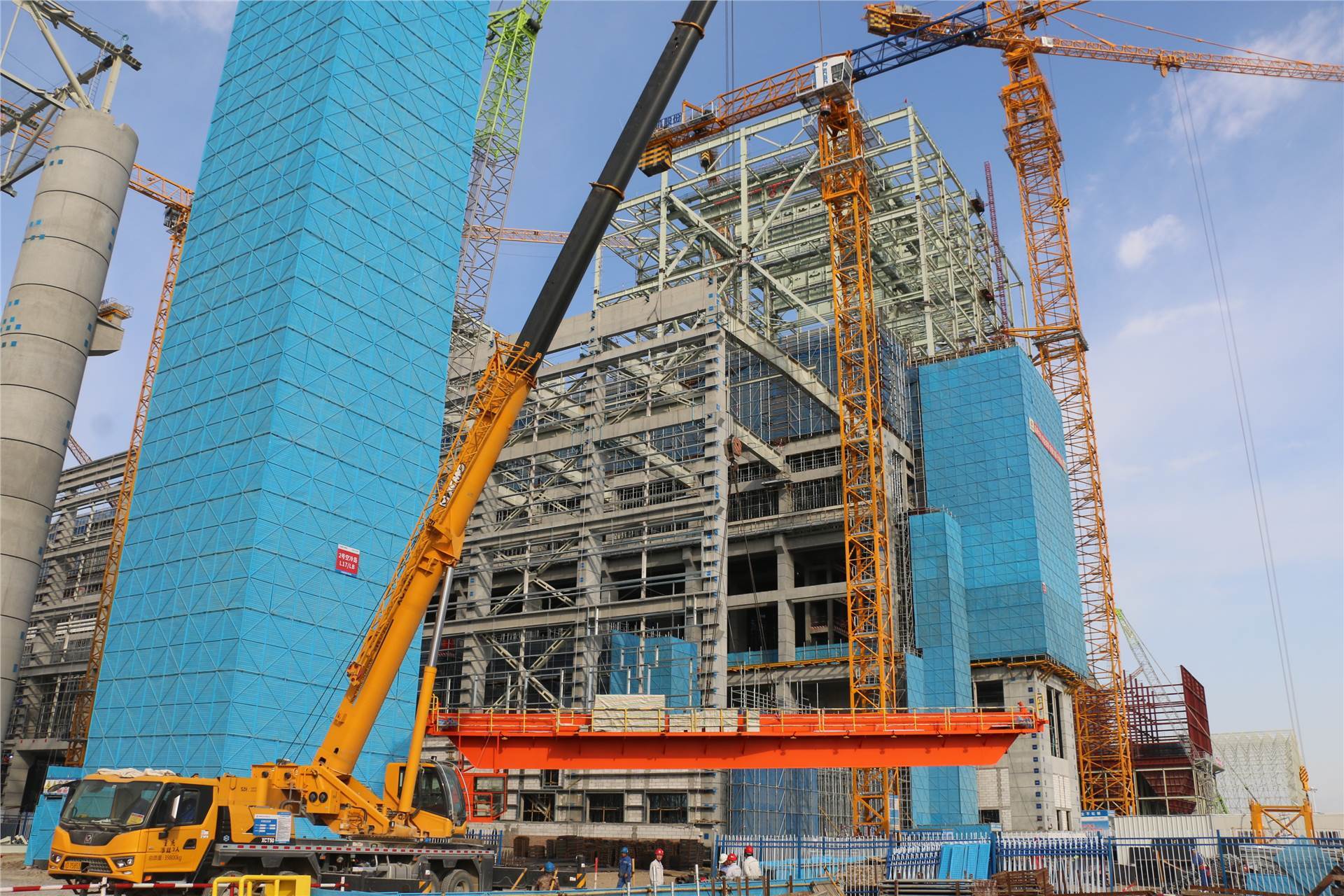 9月29日,中国能建天津电建承建的新疆博州项目2号机组汽机房行车吊装就位。